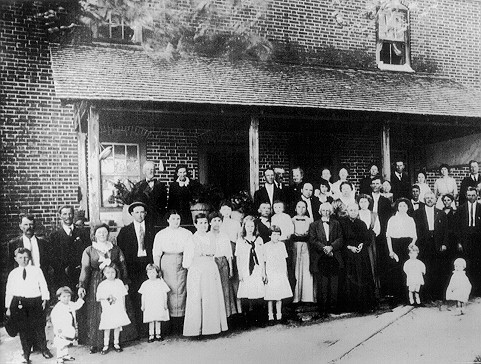 Second Row - Mr. Blakely, Frank Cook, Bettie (Jim's wife) Drawary and Ruth Sala Anna and Lucile Womack, back Evelyn Sale, Ruth Brown, Francis Womack, Loa Lash and Wilson in his arms, Sallie, Uncle Jim, Aunt Eliza, Lucy, Mollie, Ross, Jim, Georgia - Right back Mr. Sale, Mrs. Kirk, Mr. Cost Nelson and wife, Mr. Kirk and Fleta, Ethel Brown and Sid.